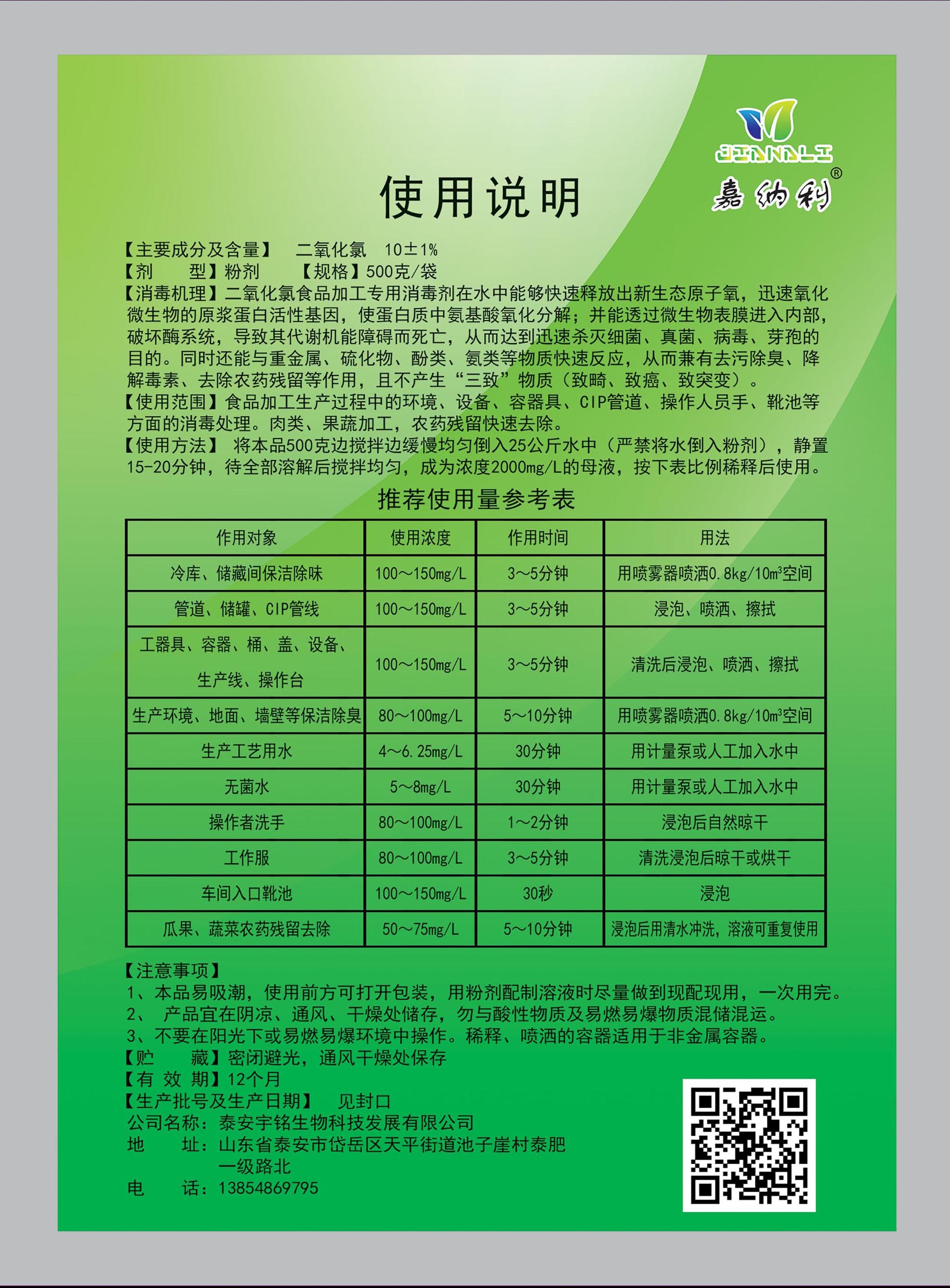 嘉納利二氧化氯消毒劑含量10%500g食品粉