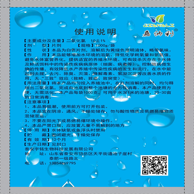嘉納利二氧化氯消毒劑含量10%1Kg水產泡騰片